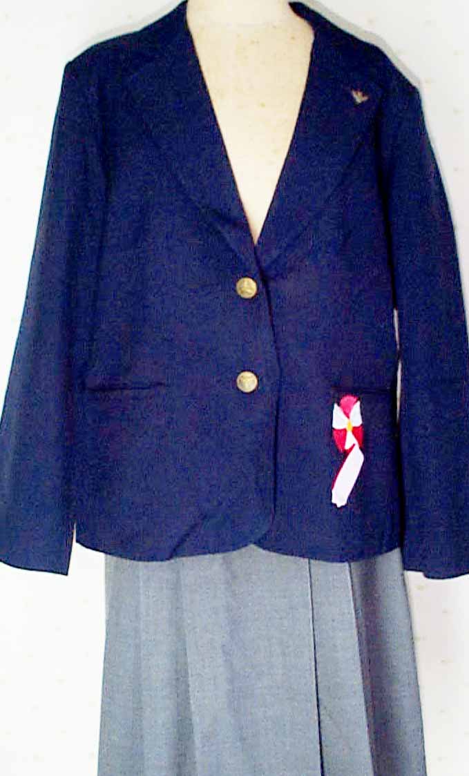 生地紺 2個ボタンブレザー。10本ひだ冬スカート
