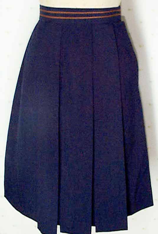 生地紺。スカート+茶色2mmライン2本有りベルト。変則8本箱(前3後3)ひだ。