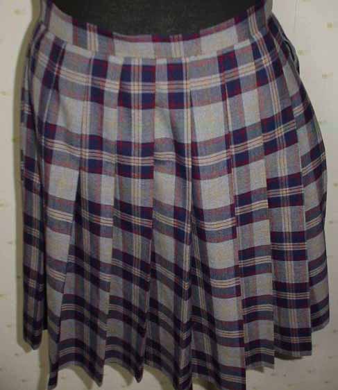 生地冬紫色。スカート「ボタン3個の内1個取れてない」前広18本ひだスカート。