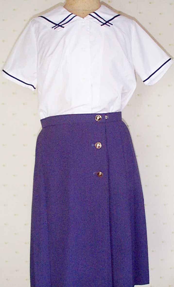 生地夏紫色。スカート「ボタン3個共有り」前広18本ひだスカート。と夏セーラーブラウス。