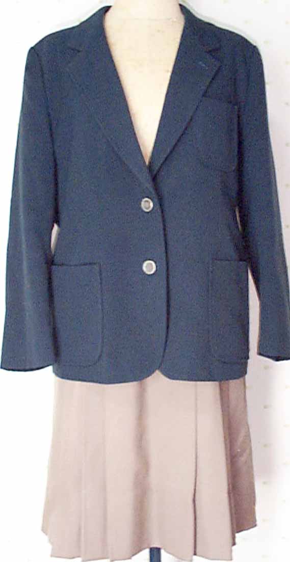 ブレザー(B約105・肩幅約42)。冬スカート(W約65・L約56)裾は安全ピン多数で止めて有る。。上下セット。50000円を大特価13800円