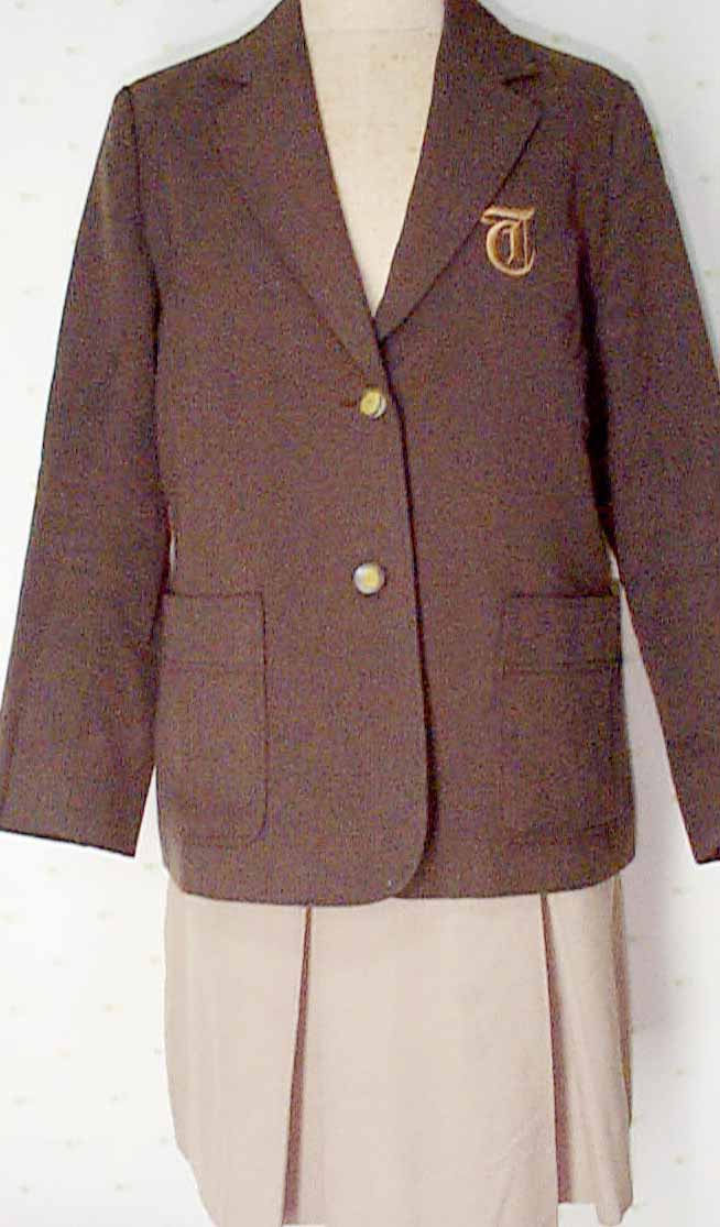 生地茶2個金ボタンブレザー(ポケットにT刺繍有り)。