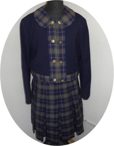 (Dコシノ・ヒロコ)3個柳川専用ボタンブレザー(ダブルエリの一部スカートと同じチェック柄)+ チェック16本ひだ冬スカート(裏生地無し)