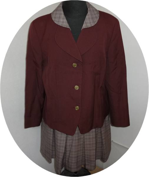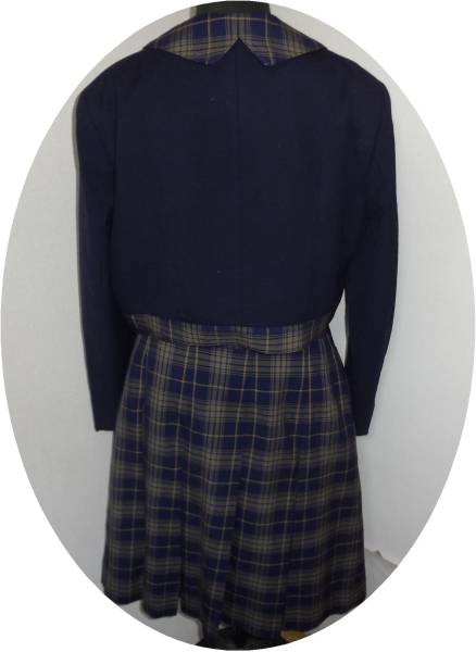 (Dコシノ・ジュンコ)1個ボタンブレザー(エリと背中はタータンチェック)+ タータンチェック16本ひだ冬スカート(裾付近に灰色部分)