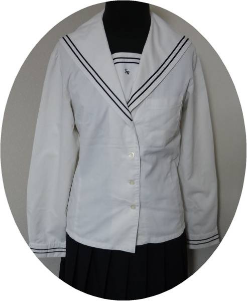 C4個ボタン前開き長袖セーラーブラウス(M)B約94肩幅約39。