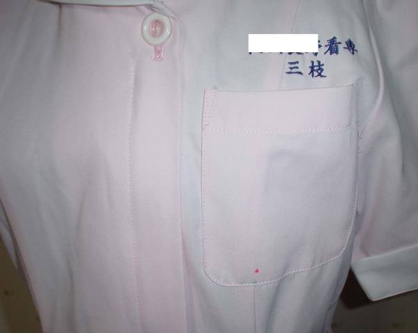 白衣(ピンク色)。左袖口に白で刺繍あり。