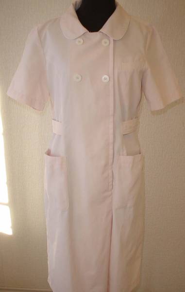 白衣(うすいピンク色)。中古Lサイズです。  エリと袖口に白の白衣