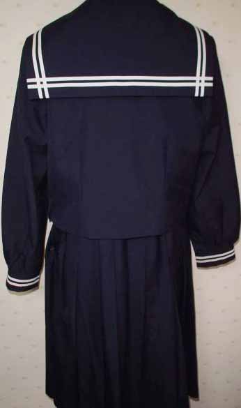 生地紺に3本白線の制服。エリ・カフスに3本4mmラインのセーラー服です。