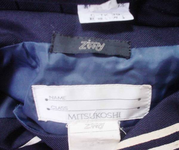 セーラー服は三越製。ポケットの上と背の椅子に擦れる所擦りきれあり。