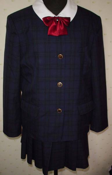 ★画像には有りませんが、指定ベスト生地紺系のタータンチェック 2個ボタン 165A B約88