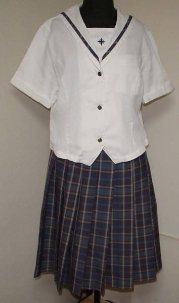 ■エリ生地チェック柄■エリに校章刺繍あり。夏セーラー服