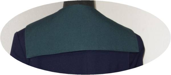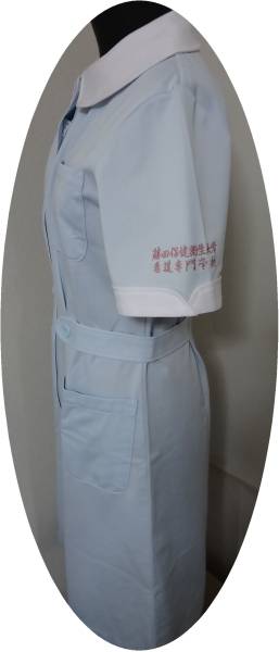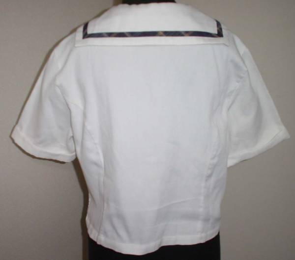 (実物画像)変った制服です。変わった制服を判りやすくするため撮影に使用した(LL)B約108丸エリブラウスつけます。
