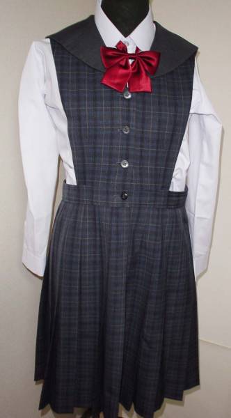 灰色のタータンチェックのセーラーブレザー。20本ひだタータンチェック冬スカート。