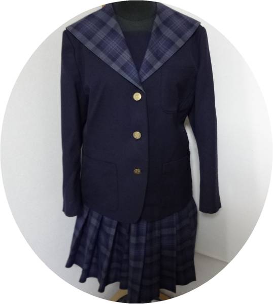 滑川高校ブレザー。エリ・ポケット・裾に約13mmの(裏表両方)バイアステープ縫いつけで可愛いデザインです。