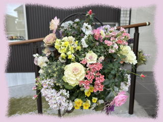 2025年1月お正月のハンギングバスケットと花