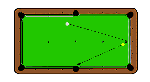 下図のように、狙いから薄めに外れて直接9番に当たらず、1度クッションに